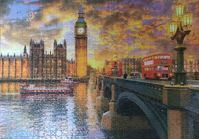 The scene is colorful and a bit challenging to put together for the same reason :) My mother completed almost entire puzzle single handedly.